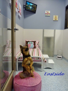 At our Eastside location each suite guest has access to their own private mini-yard for potty breaks; at Westside suite guests are taken outside four times a day to strecth their legs, go potty, get attention from the staff, and get a little bit of sunshine. Click here to learn how to enroll your pet for our Luxury Suites. Click here to learn what extra perks can be added.