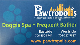 Tired of bathing your St. Bernard in your apartment bathtub? Get a pain in your back bending to bath your toy poodle? Drains getting full of hair? Don't fret, just come to Pawtropolis. We have two raised tubs, complete with hand-held nozzles and all the necessities to make bathing not only easy, but fun. And the best part - we do the cleaning up! Grab a Doggie Spa Membership Card and even earn free baths. We provide cologne, towels, hand-held dryers, shampoo and more.